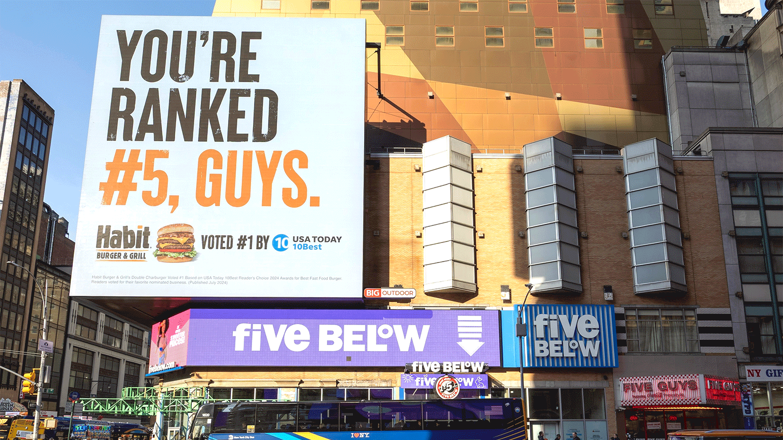 We then took aim at our biggest rival, In-N-Out Burger, and congratulated them on their impressive second place finish with a full page newspaper ad in the LA Times, and billboards located directly across from their restaurants.